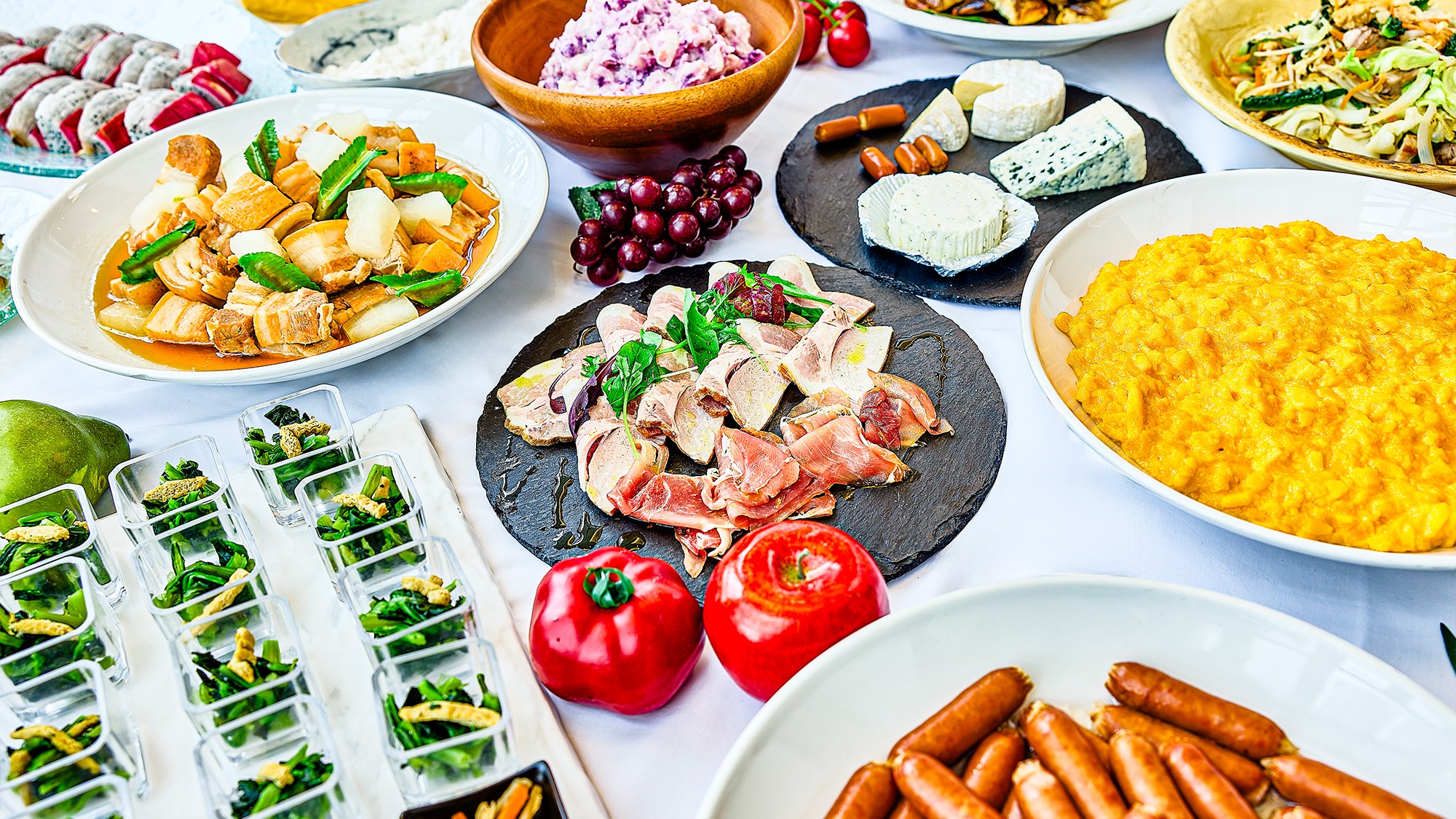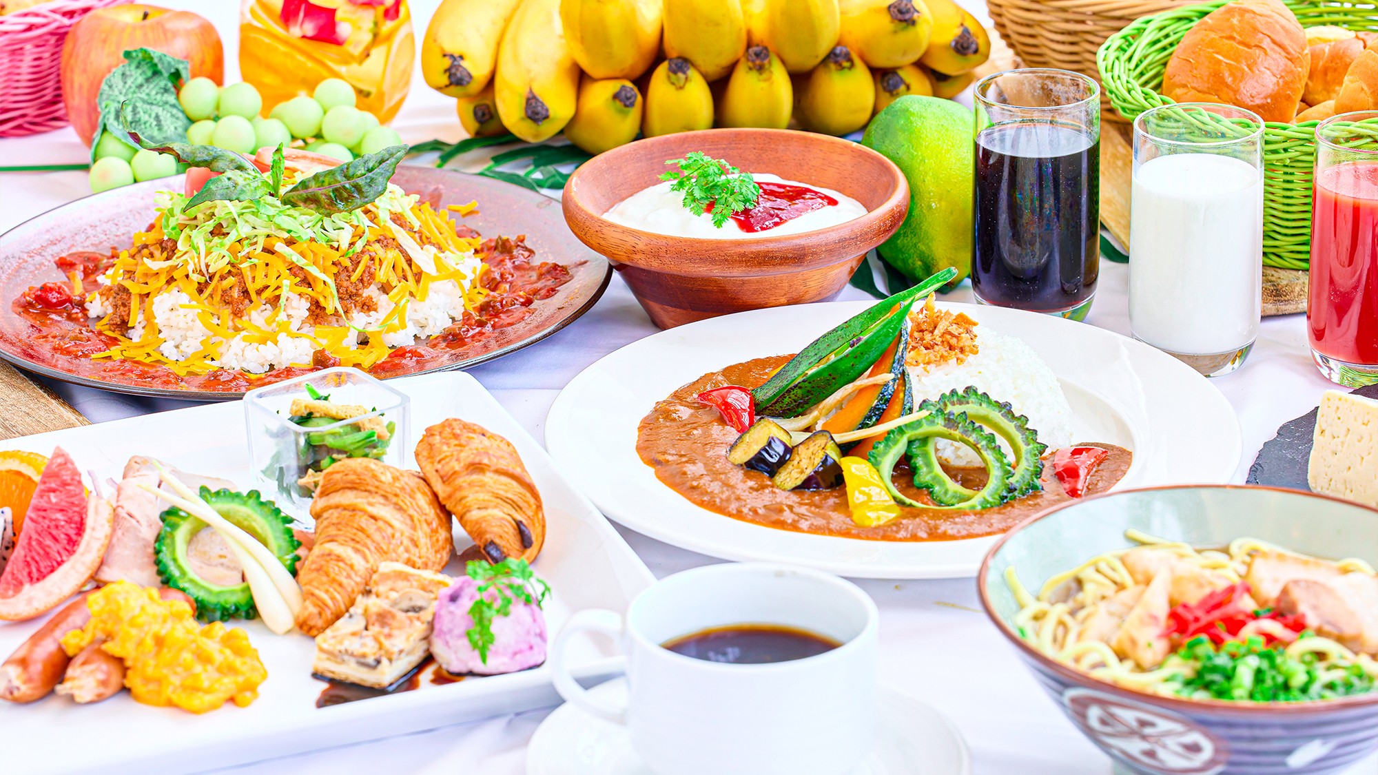 朝食ブッフェには琉球朝食や洋風メニューなど、その日の気分に合わせた組み合わせを。ランチタイムでも種類豊富な創作料理をお楽しみいただけます。