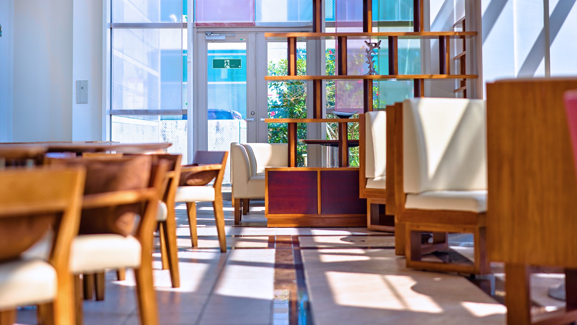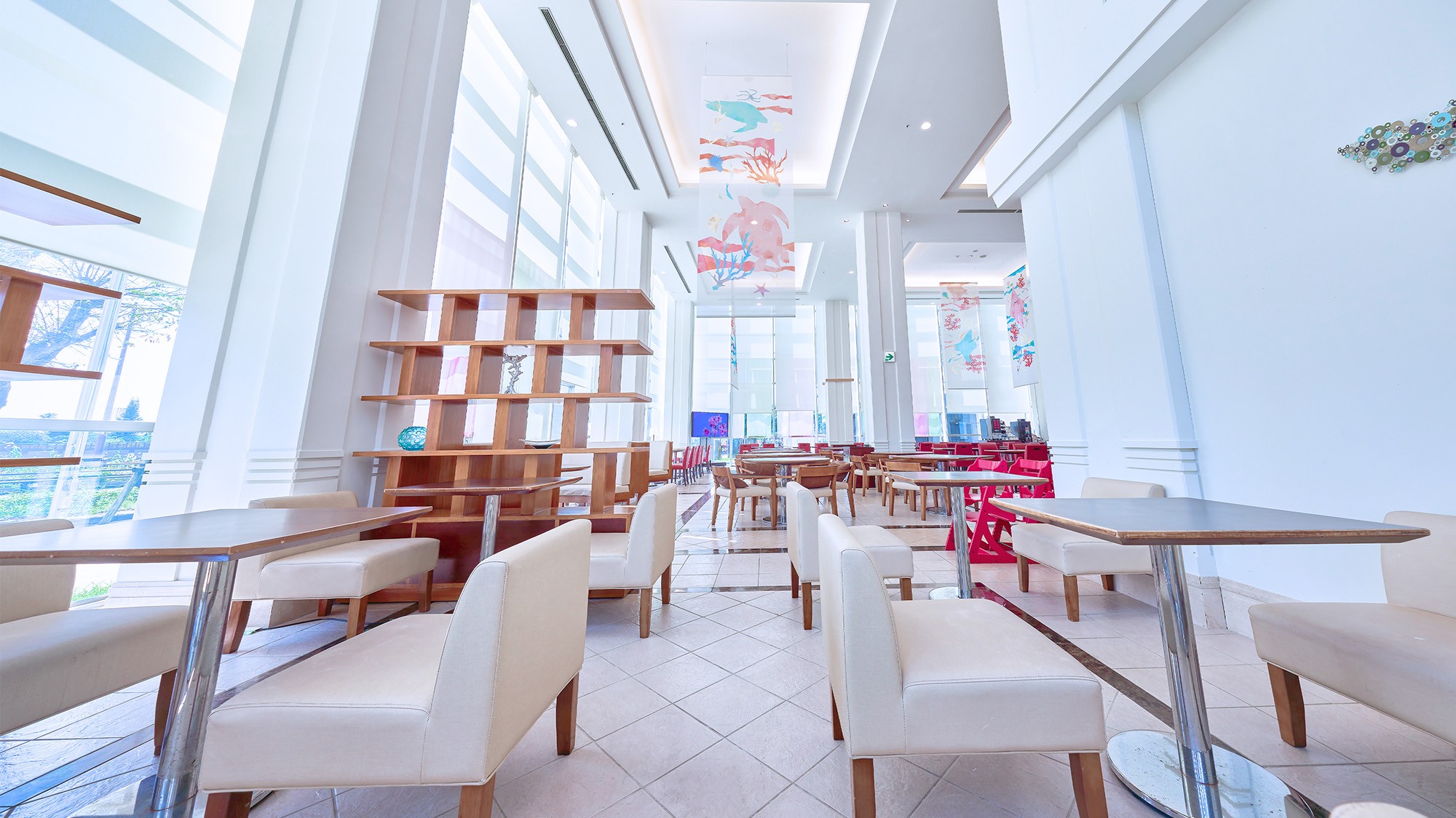 南国らしいBGMが流れる明るく開放的な“ビストロ ドゥ ラ メール”。