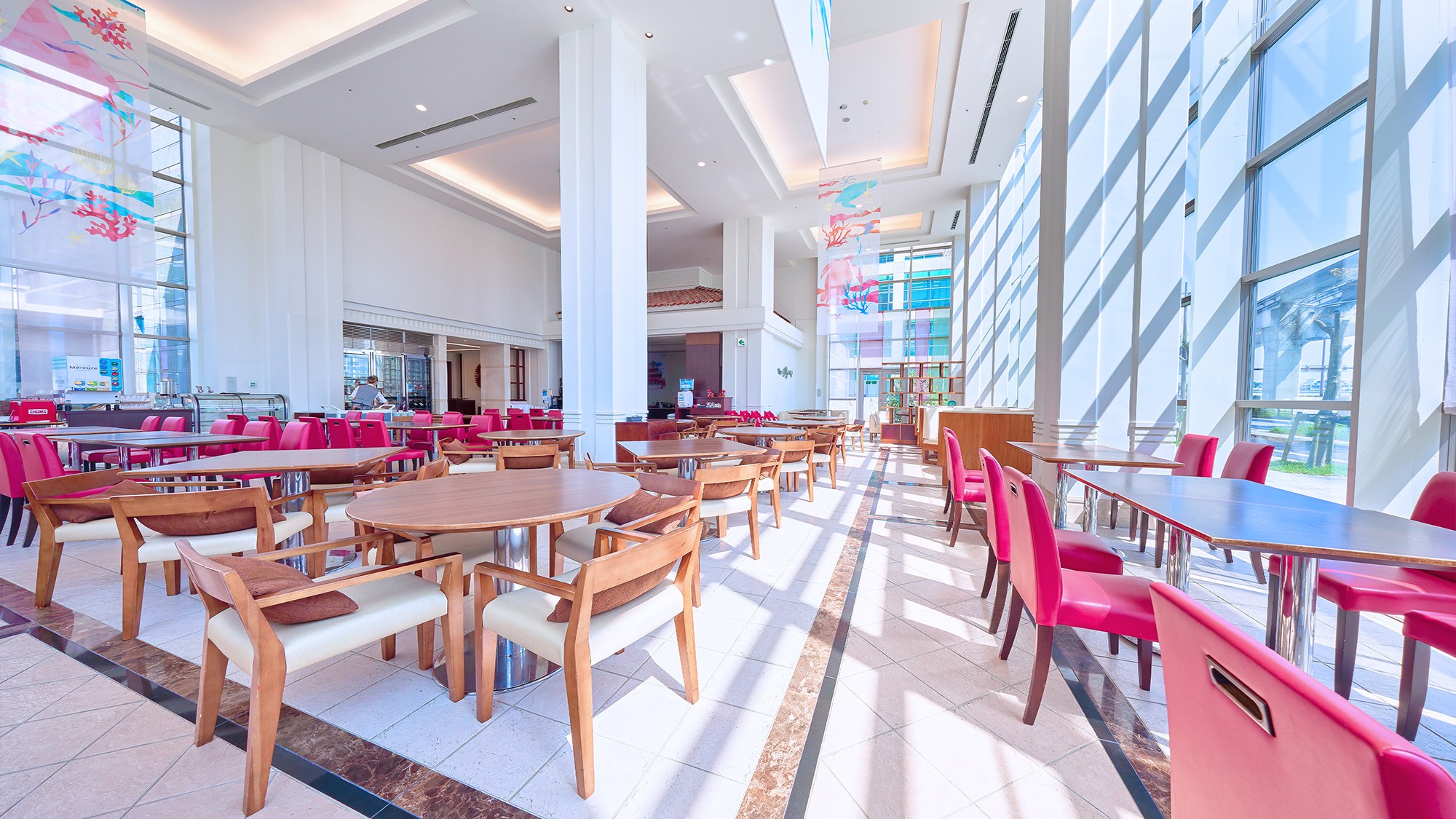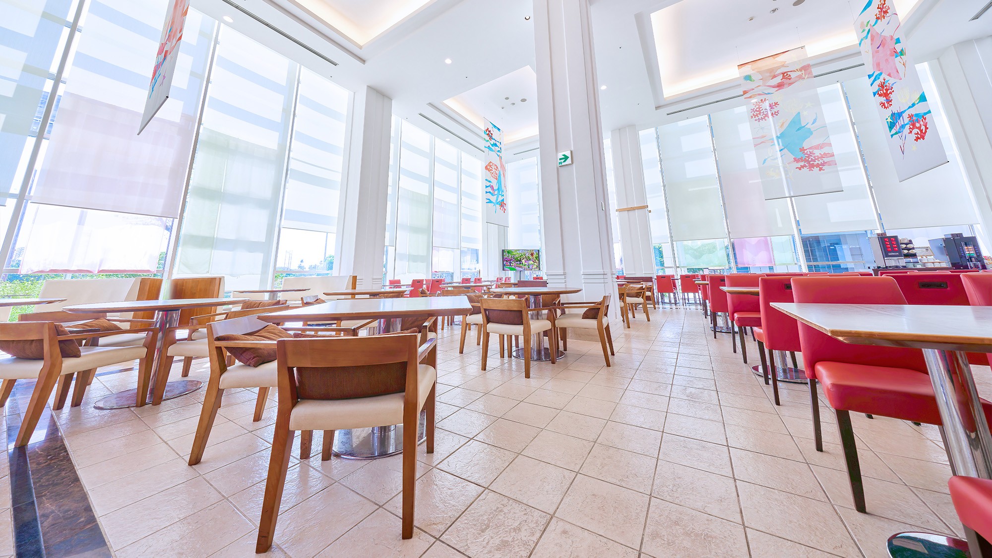 南国らしいBGMが流れる明るく開放的な“ビストロ ドゥ ラ メール”。