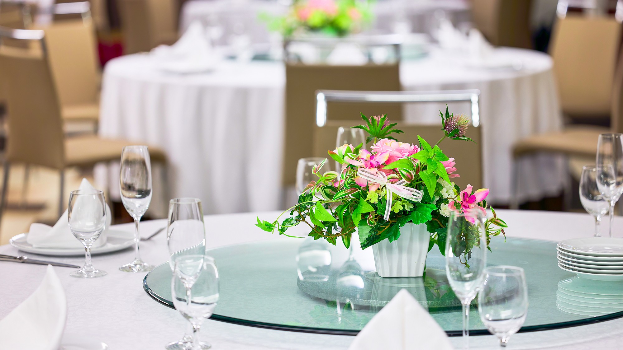 The second floor of Mercure Hotel Okinawa Naha has banquet halls perfect for various events and meetings. There are two banquet halls, each capable of accommodating different types of events. The high ceilings and spacious space create an open atmosphere. The hotel is also fully equipped and can accommodate a variety of occasions, including meetings, seminars, and parties. We can also provide layouts and dishes to suit banquets of any size, so please feel free to contact us for more information.