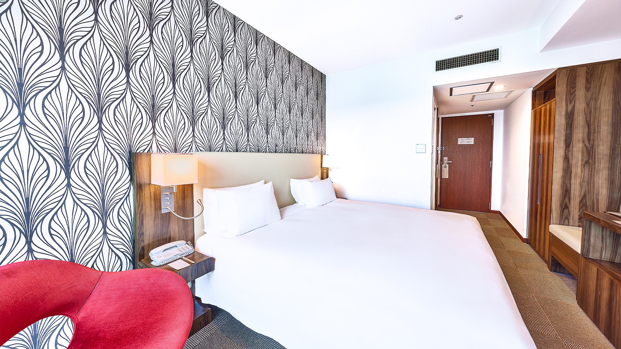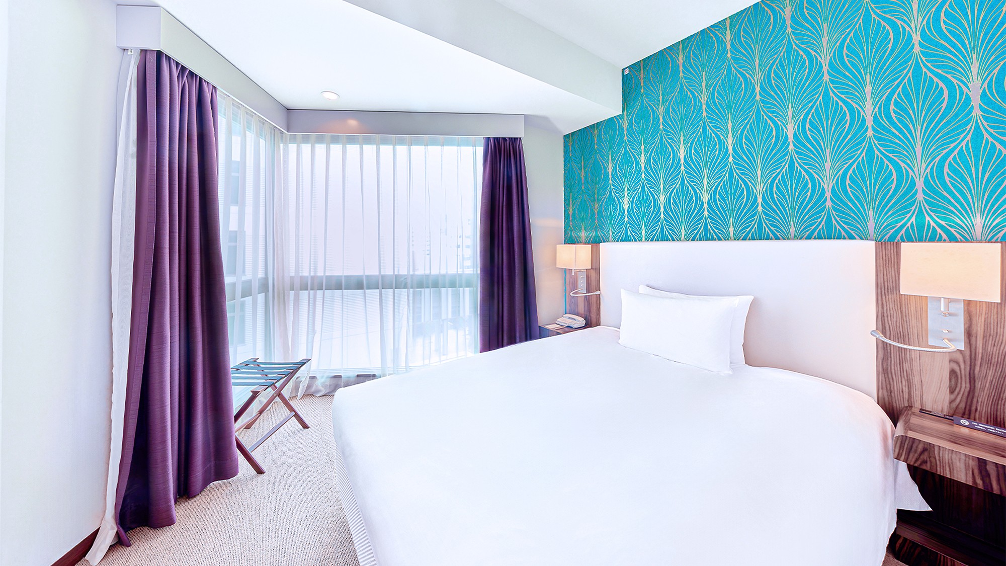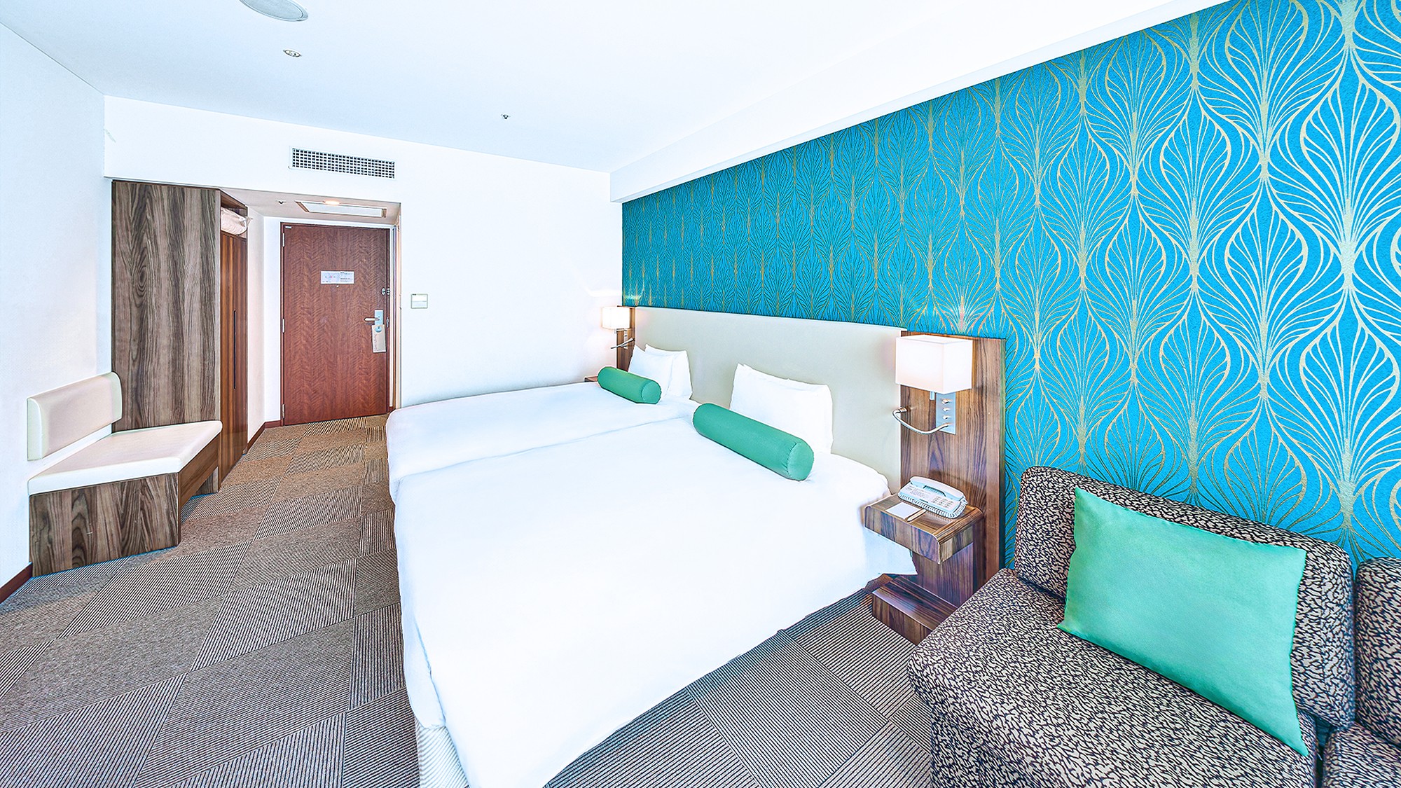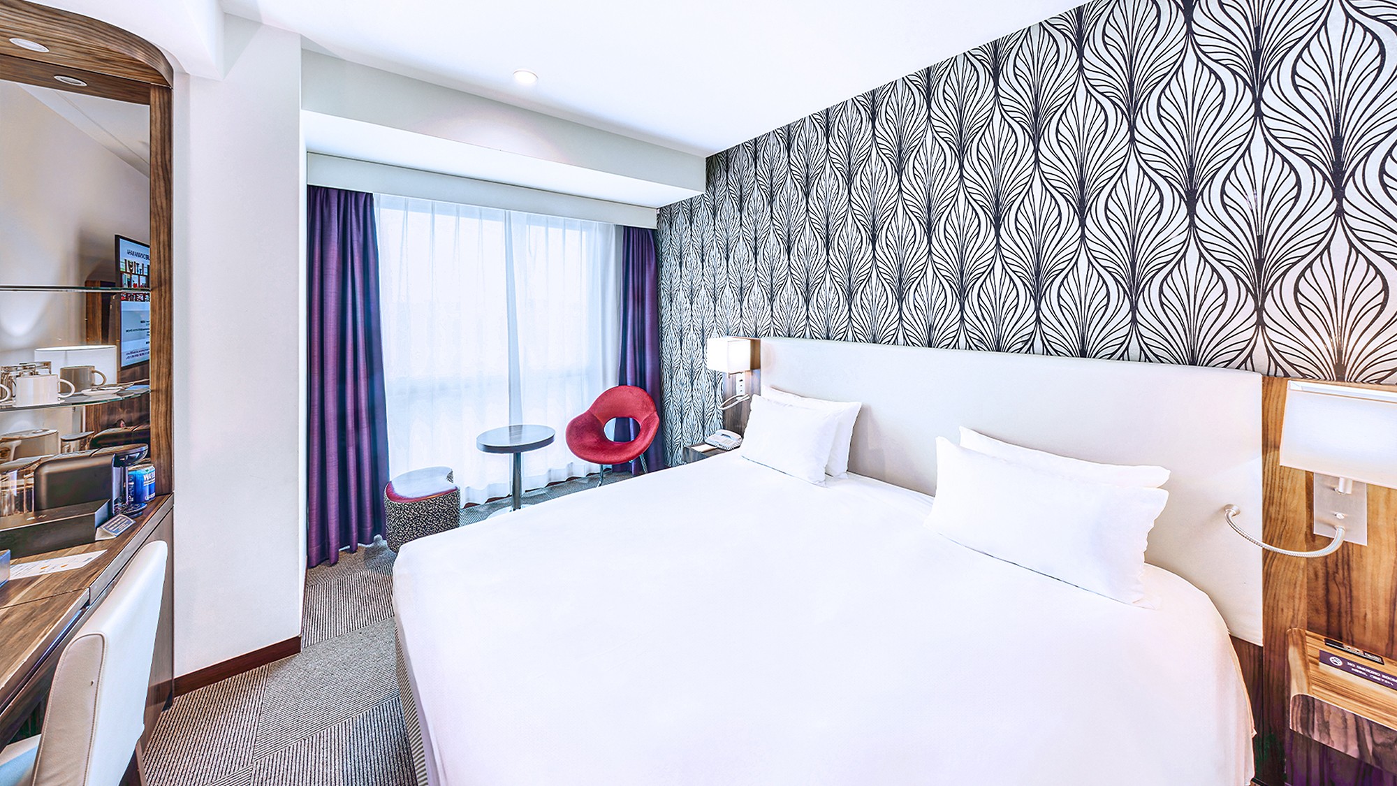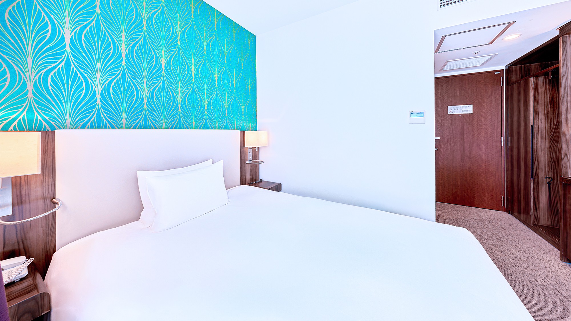 16平米のシンプルでモダンなインテリアが特徴の客室です。お部屋には快適なダブルベッドが配置されており、ビジネス出張やカップルでのご利用に最適です。