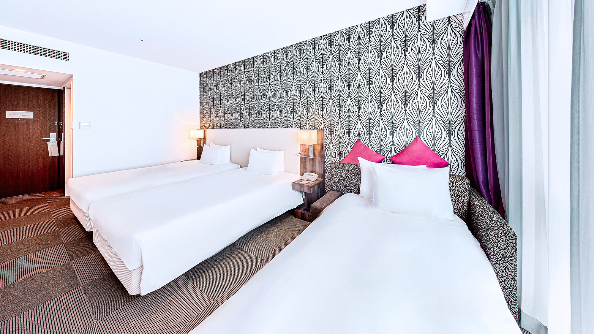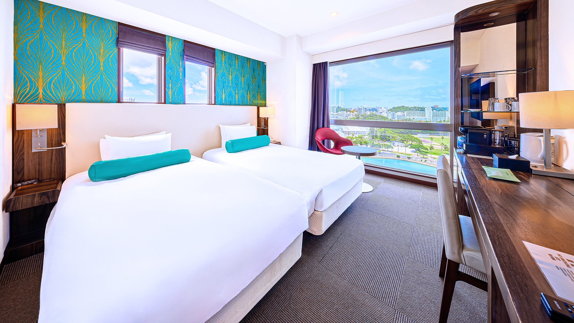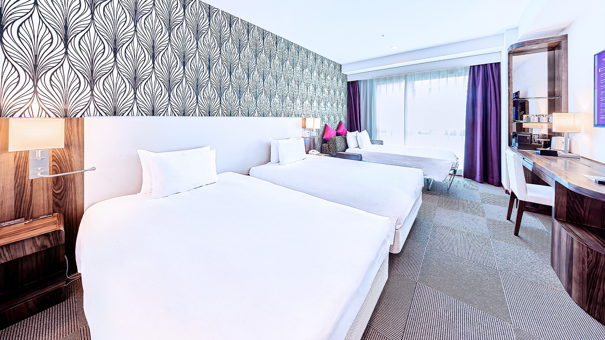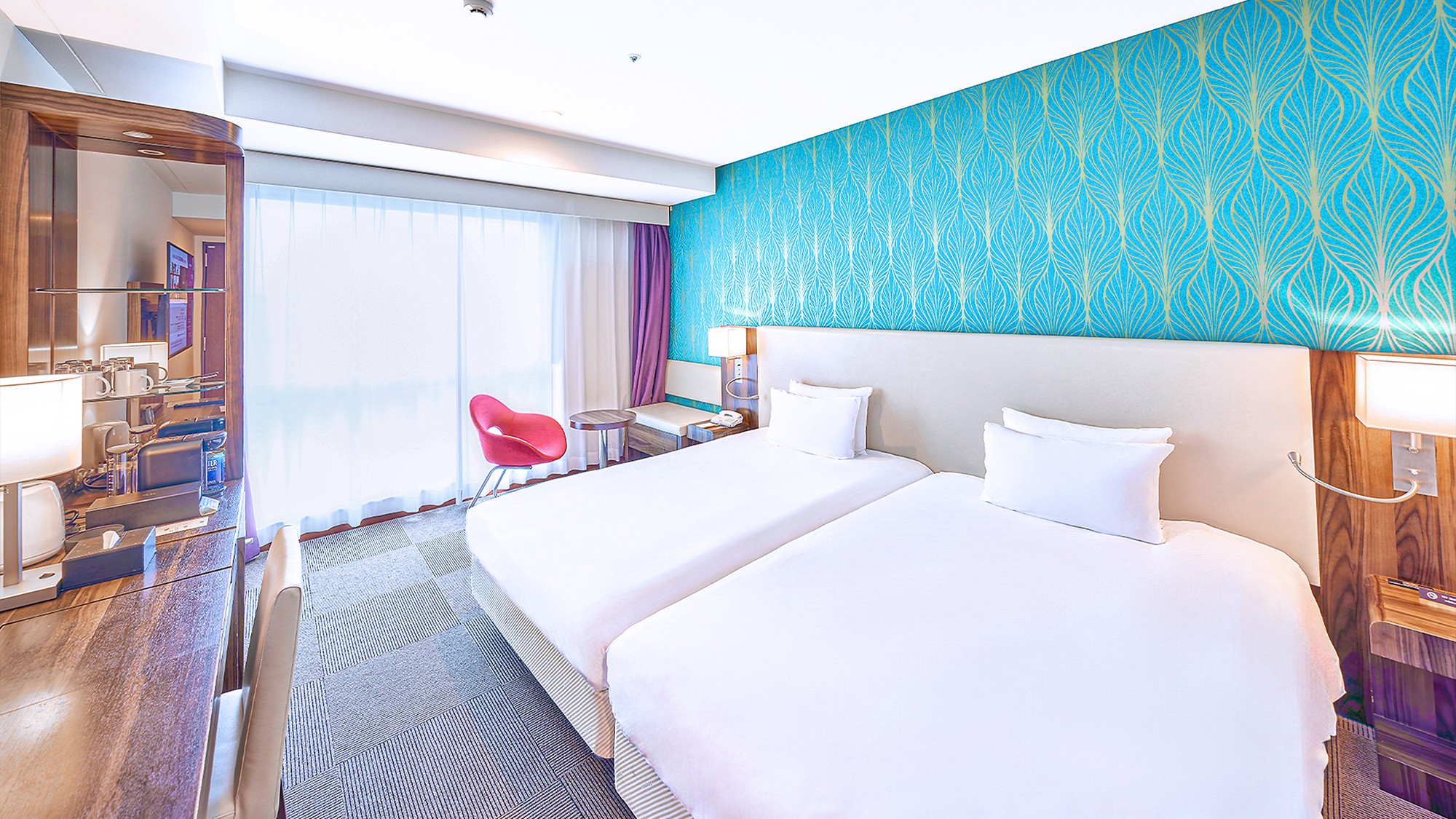 開放的な空間と快適なツインベッドを備えた客室です。モダンなインテリアと充実したアメニティで、ビジネスやレジャー、ファミリーでのご利用に最適です。